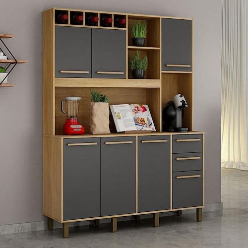 Armário de Cozinha Ambiente Granada Cinamomo Grafite - Valdemóveis