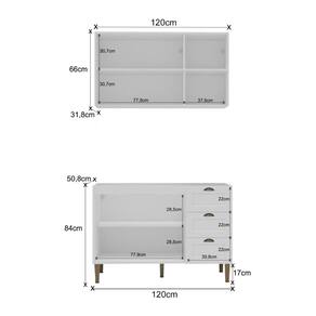 Dimensões do Produto Montado: Balcão - Altura: 84cm | Largura: 120cm | Profundidade: 50,8cm Aéreo - Altura: 66cm | Largura: 120cm | Profundidade: 31,8cm *Você pode consultar as medidas internas na imagem técnica do produto.