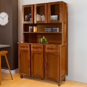 O(a) Armário de Cozinha Bergen Madeira Maciça 6 Portas 3 Gavetas com Vidro Ypê - Pnr Móveis é produzido em Madeira Maciça e HDF na escala de brilho Fosco, e possui um grau de dificuldade de montagem: Médio.