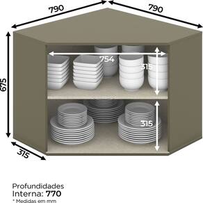 Produzida em MDF, a colecao une o que ha de mais conceitual em tendencias de design e solucoes inteligentes, permitindo a versatilidade necessaria para criar a cozinha dos seus sonhos. O Armario Aereo Canto Obliquo 2 Portas 79cm faz parte da linha Evelin que une na mesma colecao, o suprassumo do design as mais inteligentes solucoes. O resultado: versatilidade e beleza para voce montar a cozinha dos seus sonhos.