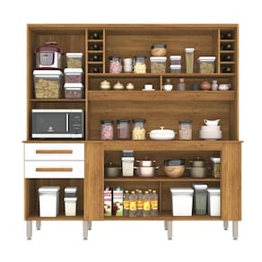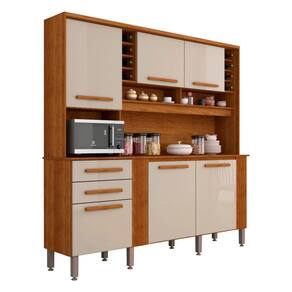 Você nunca imaginou que sua cozinha pudesse ficar tão organizada. Com o armário de cozinha Catar, o espaço fica ainda mais convidativo e sempre pronto para te ajudar a preparar pratos incríveis, com espaço amplo para melhor acomodação de utensílios, portas superiores recuadas que trazem mais requinte e elegância ao design, pés com regulagem de altura, porta microondas e puxadores em madeira. Confeccionado com materiais de resistência e qualidade, ele é a melhor opção para completar seu lar. Aproveite, você merece!