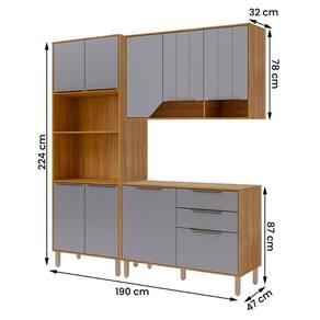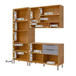 Em MDF resistente, conta com 9 portas (1 basculante com pistão a gás), 2 gavetas com corrediças telescópicas e 6 prateleiras para organização perfeita.