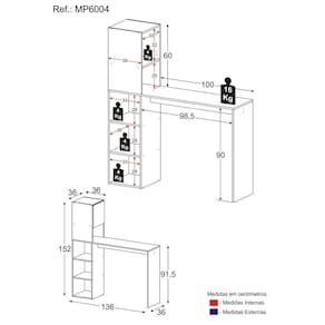 Dimensões do produto montado: Altura: 152 cm | Largura: 136 cm | Profundidade: 36 cm *Você pode consultar as medidas internas na imagem técnica do produto.