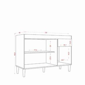 Produzido em MDP de 15mm e 12mm de espessura, proporcionando resistência e durabilidade. Sistema de sustentação com pés proporcionando maior firmeza ao produto. Puxadores de Plástico dando maior resistência. Dobradiças das portas metálicas dando maior durabilidade e resistência ao abrir e fechar as portas. Acabamento em verniz texturizado fosco e verniz brilho nas portas, garantindo a conservação do móvel, além de manter a beleza constante oferece ao móvel, resistência e durabilidade prolongando a vida útil do produto.