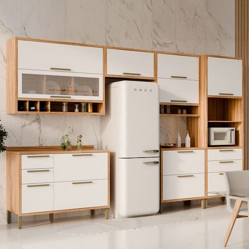 - Acompanha: Armário de Cozinha + Kit Ferragens + Manual de Montagem