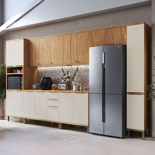 O(a) Armário de Cozinha com Balcão e Tampo 16 Portas 3 Gavetas Nice Plus 100% Mdf Amêndoa/Off White - Pnr Móveis é produzido em 100% MDF na escala de brilho Semi-Brilho, e possui um grau de dificuldade de montagem: Médio. Seu revestimento/acabamento é: Pintura UV.