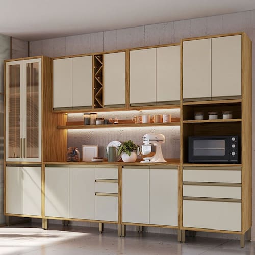 - Acompanha: 1 Armário de Cozinha, 1 Balcão, 1 Tampo , Kit Ferragens e Manual de Montagem
