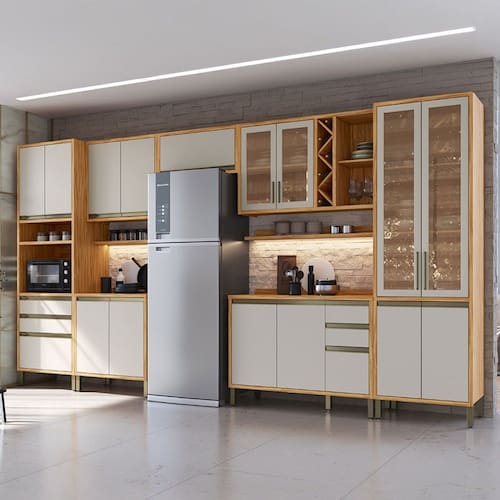 - Acompanha: 1 Armário de Cozinha, 1 Balcão, 1 Tampo, Kit Ferragens e Manual de Montagem