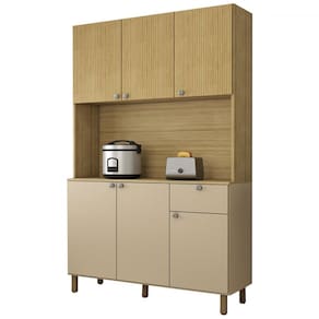 O(a) Armário de Cozinha com Balcão Evermore 6 Portas 1 Gaveta Ripado 3d Freijó/Vanilla - Loja é produzido em MDP na escala de brilho Fosca com Textura, e possui um grau de dificuldade de montagem: Médio.