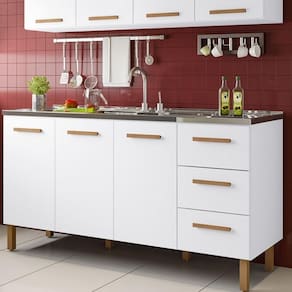 1 Armário de Cozinha com Balcão Fortaleza 3 Portas ( Sem pia )
