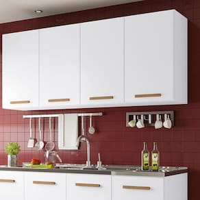 Quantas vezes você já sentiu que falta espaço na sua cozinha? Esse armário é a solução ideal: além de oferecer um design moderno, ele garante praticidade para guardar utensílios, alimentos e ainda disponibiliza um balcão para apoiar eletrodomésticos ou preparar receitas.