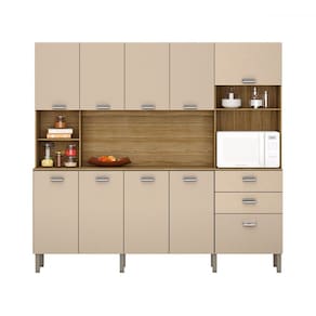 O(a) Armário de Cozinha com Balcão July 10 Portas 2 Gavetas Freijó/Vanilla - Pnr Móveis é produzido em MDP na escala de brilho Semi-Fosco, e possui um grau de dificuldade de montagem: Médio.
