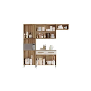 Cozinha Juma Produzido em MDP de 15mm e 12mm de espessura, proporcionando resistência e durabilidade. Amplo espaço interno, garantindo maior firmeza ao móvel. Puxadores de MDF dando maior resistência. Dobradiças metálicas dando maior durabilidade e resistência ao abrir e fechar as portas. Acabamento em verniz texturizado fosco e verniz brilho nas portas, garantindo a conservação do móvel, além de manter a beleza constante oferece ao móvel, resistência e durabilidade prolongando a vida útil do produto.