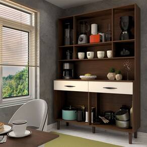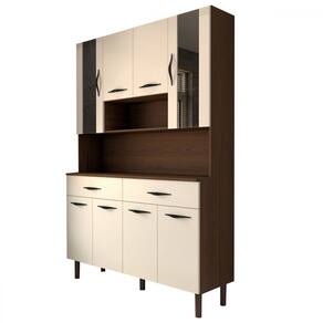 O(a) Armário de Cozinha com Balcão Sansa 8 Portas 2 Gavetas com Vidro Nogueira/Off White - Loja é produzido em MDP na escala de brilho Semi-Fosco, e possui um grau de dificuldade de montagem: Médio.