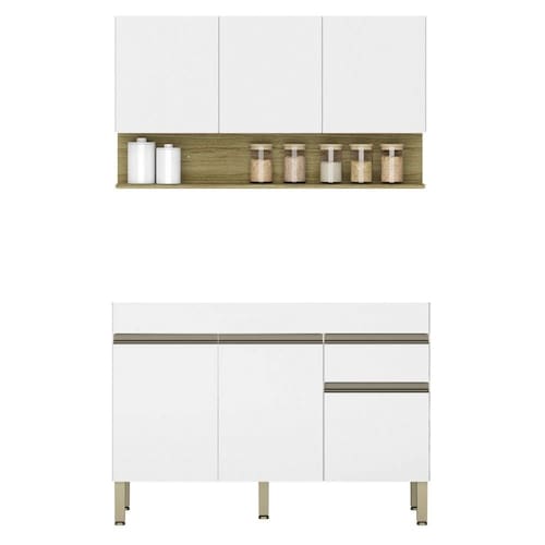 Você quer renovar a sua cozinha deixando mais moderna e funcional? Então conheça o Armário de Cozinha com Balcão sem Tampo 120cm Lina Z06 Supremo/Freijó, da Mpozenato!