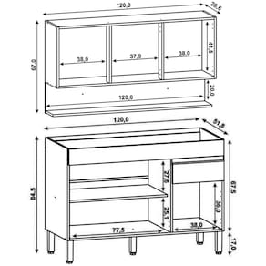 Balcão Gabinete: 120 x 84,5 x 51,8 cm.