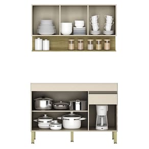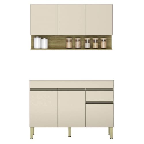 Você quer renovar a sua cozinha deixando mais moderna e funcional? Então conheça o Armário de Cozinha com Balcão sem Tampo 120cm Lina Z06 Vanilla/Freijó, da Mpozenato!