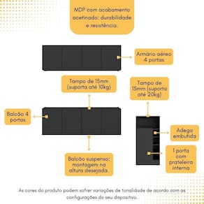 Conteúdo da Embalagem: 1 (um) Balcão 1 (um) Armário Aéreo 1 (uma) Bancada/Mesa Manual de Montagem Kit Ferragem