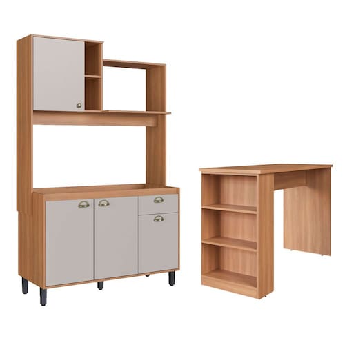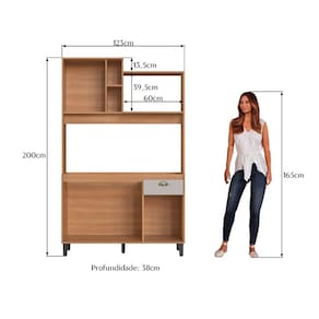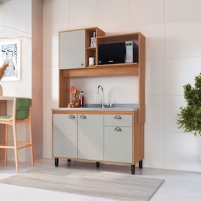 O Kit Cozinha Compacta Fernanda com Bancada une modernidade, praticidade e elegância. Produzida em MDP de 15mm, a cozinha conta com 4 portas e 1 gaveta com corrediça metálica, garantindo organização para utensílios, mantimentos e outros itens essenciais. Além disso, dispõe de 2 nichos e um compartimento compatível para micro-ondas, tornando o ambiente mais prático e funcional. Sua estrutura permite a instalação de tampo ou pia de 1,20m, enquanto os puxadores ponto e concha na cor ouro e os pés com nivelador garantem estabilidade e charme. A Bancada complementa o conjunto com nichos decorativos, ideais para organizar utensílios e eletroportáteis. Como módulo avulso da linha Delmarco, permite personalização conforme suas necessidades. Com esse kit, sua cozinha ganha mais organização, sofisticação e funcionalidade. CARACTERÍSTICAS TÉCNICAS: - Produzido em MDP 15mm; - Possui 4 portas com dobradiças com amortecimento; - Possui 1 gaveta com corrediças metálicas; - Possui 2 Nichos; - Espaço para tampo ou pia de 1,20m (tampo não incluso); - Puxadores ponto e concha ouro; - Pés plásticos com nivelador de piso; - 3 nichos adicionais, proporcionando mais organização e praticidade. *NÃO ACOMPANHA O TAMPO* DIMENSÕES: Cozinha: (A/L/P) 200 x 123 x 51 Cm Bancada: (A/L/P) 93,3 x 60x 135 Cm INFORMAÇÕES ADICIONAIS: - ATENÇÃO: Não trabalhamos e não nos responsabilizamos pela montagem do móvel. Antes da montagem conferir se o produto está de acordo com o que comprou, produto montado e danificado pela montagem não será aceito troca. Montagem e instalação por conta do comprador. - As imagens ambientadas são meramente ilustrativas e podem apresentar itens que não compõe o produto. As cores do produto podem variar de acordo com o monitor, a iluminação do ambiente ou sua percepção visual. - Limpeza: Deve ser feita com pano macio e seco ou levemente umedecido com água e sabão neutro. Não devem ser utilizados abrasivos como palha de aço e objetos cortantes. -Garantia para defeitos de fabricação conforme Código de Defesa do Consumidor.