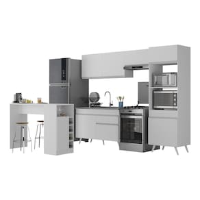 Um dos grandes diferenciais desta cozinha é a sua versatilidade. Os módulos individuais permitem que você monte o conjunto do jeito que melhor se encaixa no seu espaço. O balcão ainda conta com tampo removível - perfeito para acoplar uma pia de até 120cm.