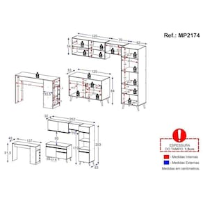 Produzido em MDP com acabamento acetinado - que tem apenas aquele toquezinho de brilho, cerca de 20% - esse conjunto não só encanta aos olhos como também garante uma durabilidade impressionante. As corrediças são metálicas para facilitar o manuseio, os pés retrô são feitos em polipropileno dando aquele charme especial e os puxadores são de ABS resistente. Ah, e o tampo? É em MDP de 15mm com uma pintura altamente resistente!
