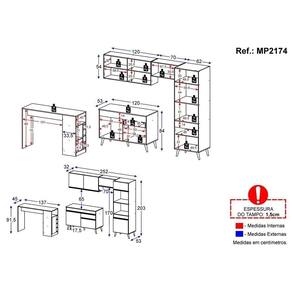 Acabamento: Pintura UV/Finish Foil | Tonalidade: Preto | Material: MDP | Referência do Modelo: MP2174 | Coleção: Veneza | Instruções de Cuidado: Limpar com pano seco para retirar o pó. Não utilizar produtos químicos ou abrasivos a limpeza. Não aplicar lustra móveis. | Sistema de Montagem: O produto acompanha manual de montagem juntamente com kit ferragem. O produto será entregue desmontado e não disponibilizamos o serviço de montagem. | Produto Composto por: 1 armário aéreo 70 cm, 1 armário aéreo 120 cm, 1 balcão com tampo 120 cm, 1 armário para forno e microondas 62 cm, 1 bancada, manual de montagem e kit ferragem. | Altura Montado: 203 | Largura Montado: 252 | Profundidade Montado: 53 | Tamanho (L x A x P): 252 x 203 x 53 | Peso do Produto: 128 | Garantia do Fabricante: 3 | Fabricante: Multimóveis | Requer Montagem: Sim | Quantidade de Portas: 8 | Quantidade de Gavetas: 1 | Quantidade de Prateleiras: 7 | Quantidade de Puxadores: 8 | Quantidade de Pés: 9 | Porta com Vidro: Não | Corrediça: Metálica | Material do Puxador: ABS | Material dos Pés: Polipropileno | Acompanha Pia Inox: Não | Balcão 120 cm compatível para uso de pia: Sim | Tampo Incluso: Sim | Quantidade de Tampos: 1 | Material do Tampo: MDP | Espessura do Tampo: 1.5 | Com Prateleiras: Sim | Produto: Cozinha Compacta | Tipo: Modular | RBN: 17100674011 | Altura (cm): 203 cm | Largura (cm): 252 cm | Profundidade (cm): 53 cm | Estado de Origem: RS | Produto precisa de Montagem?: Sim, sugerimos a contratação do nosso serviço de montagem (para os CEPs em que o serviço está disponível) ou de algum profissional experiente de sua preferência | Ubicação do móvel: Não aplica | Altura do Produto com Embalagem: 42 | Largura do Produto com Embalagem: 65 | Comprimento do Produto com Embalagem: 188 | Peso do Produto com Embalagem: 128 | Nome do Produto no Fornecedor: Armário de Cozinha com Bancada/Mesa Gourmet Veneza Multimóveis MP2174 Preto/Dourado | Descrição do Tamanho: (L x A X P): 252 cm x 203 cm x 53 cm | Destaque 1: MDP com acabamento acetinado: maior durabilidade e resistência. | Destaque 2: Balcão com tampo removível e compatível com pia de 1,20m. | Destaque 3: Corrediças metálicas (mais leveza no manuseio) e pés retrô em polipropileno: ambiente mais estiloso. | Destaque 5: Os módulos são individuais e você pode montar da maneira que se adaptar melhor ao seu ambiente. Bancada Gourmet com 1 porta e adega: ideal para dividir ambientes. | Tempo de Garantia: 3 meses | Tipo de móveis de cozinha: Armário/Balcão | Marca: Multimóveis | Materiais do corpo: MDP | Materiais das portas: MDP | Altura do armário: N/A | Largura do armário: N/A | Profundidade do armário: N/A | Altura do balcão: 84 cm | Largura do balcão: 120 cm | Profundidade do balcão: 53 cm | Modelo detalhado: N/A | Peso (kg): 128 kg | Estilo: Retrô/Vintage Cor: Branco/Preto