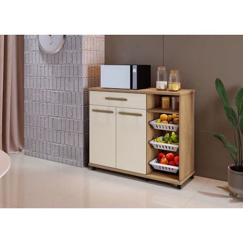 Com designer sofisticado a Fruteira Salinas é ideal para armazenamento de frutas e legumes, possui também rodízios para facilitar a movimentação. Simples e fácil de limpar suas fruteiras são removíveis. Móvel ideal para quem quer manter sua cozinha mais organizada.\nEspecificações do Produto Montado: Altura: 88 cm Largura: 107 cm Profundidade: 39 cm Peso: 36Kg Quantidade de Volume: 1\nGarantia: 3 Meses Número de Portas: 02 Número de Prateleiras: 01 Número de Gavetas: 01 Número de Cestos: 03 Possui vidro: Não Possui rodízio: Sim Necessita de montagem? Sim, sugerimos a contratação de algum profissional experiente de sua preferência Recomendações de limpeza e manutenção: Limpar com pano umedecido, não aplicar produtos químicos.\nObservações: Não oferecemos serviço de montagem, mas todos os produtos possuem manual de montagem com o passo a passo. Recomendamos contratar um profissional de montagem. Pode existir alguma diferença de tonalidade entre a foto e o produto, devido ao tratamento de imagens e à calibração de cores do monitor