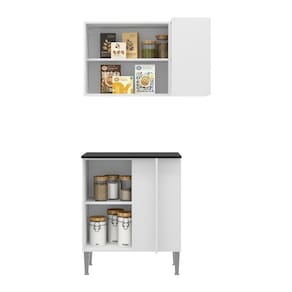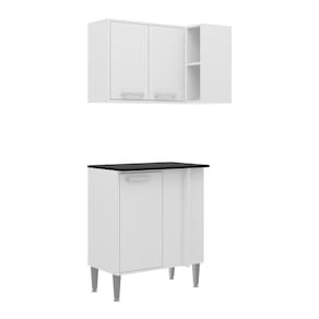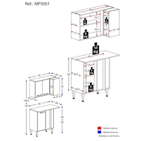 Conteúdo da Embalagem: 1 (um) balcão com tampo de 90 cm 1 (um) armário aéreo com nichos de 90 cm