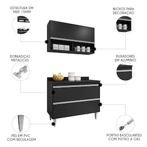 O Armário de Cozinha Com Nichos CP01 Com Tampo 100cm M24 Preto, da Mpozenato se destaca por ser uma peça que combina perfeitamente estilo e funcionalidade.