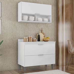 Conteúdo da Embalagem: 1 Armário Aéreo, 1 Balcão, 1 Tampo.