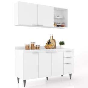 Conteúdo da Embalagem: 1 Armário Aéreo, 1 Balcão, 1 Tampo.
