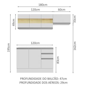 - 47 cm de profundidade no balcão e 29 cm nos aéreos