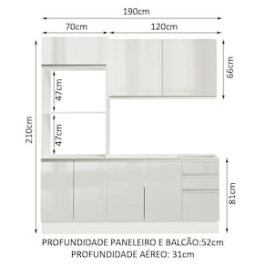 - 52 cm de profundidade no balcão e na torre e 31 cm no aéreo