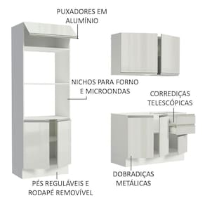Produzida em 100% MDF, possui ferragens de qualidade, como puxadores em alumínio, dobradiças metálicas e corrediças telescópicas, itens que aumentam a durabilidade do produto.