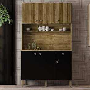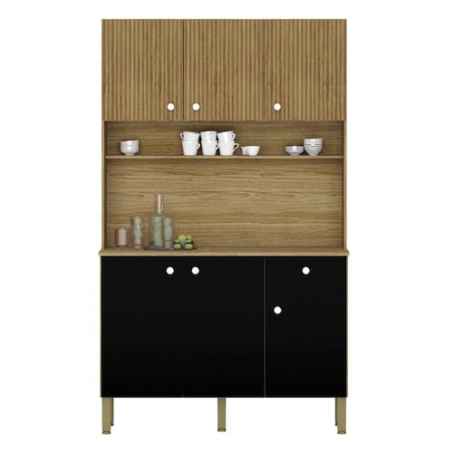 Com impressão ripada em pintura UV nas portas que traz um design mais moderno, essa Cozinha Compacta, com seis portas e uma prateleira interna é ótima para o armazenamento de panelas, mantimentos e potes, possui também uma gaveta para talheres ou panos de prato e uma bancada com nicho para apoio de eletro portáteis, entre outros utensílios culinários que facilitam o seu dia a dia. Esses Móveis para Cozinha são produzidos em MDP de 12mm e 15 mm, dobradiças e corrediças telescópicas 100% metálicas, puxador ergonômico em plástico resistente (poliestireno) e pés reguláveis em plástico resistente (polipropileno). Todos os processos de acabamento em pintura com secagem em luzes UV, promovendo uma ótima resistência e durabilidade.