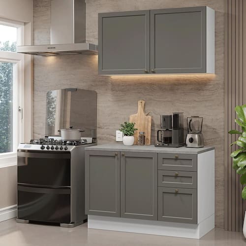 Armário de Cozinha Compacta 120 cm Branco/Cinza Vik Madesa 01