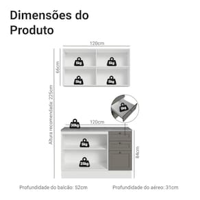 - 52 cm de profundidade nos balcões e 31cm nos aéreos