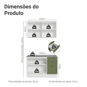 - 52 cm de profundidade nos balcões e 31cm nos aéreos