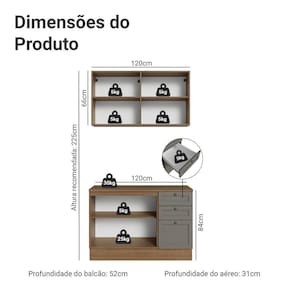 - 52 cm de profundidade nos balcões e 31cm nos aéreos