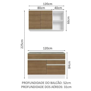 - 52 cm de profundidade no balcão e 31 cm nos aéreos