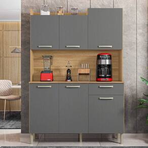 Você acabou de encontrar a Cozinha Compacta ideal para a sua casa, conheça mais sobre a Cozinha Compacta 6 Portas 1 Gaveta Pádua K02 Freijó/Gris, da Mpozenato!