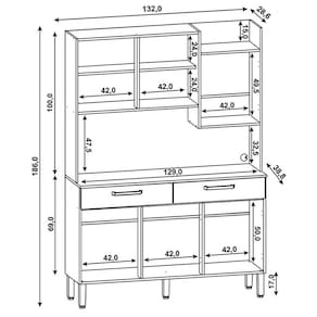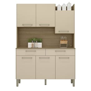 Ela tem um design moderno e é uma Cozinha Funcional, com cores que combinam com qualquer ambiente. Você pode guardar seus alimentos e louças nas 6 portas, talheres, panos de prato ou utensílios menores nas 2 gavetas, o nicho superior e a bancada podem ser usados para colocar objetos decorativos ou eletrodomésticos. Para garantir a qualidade da sua Cozinha o tampo é feito de MDP com pintura UV, resistente e fácil de limpar, com dobradiças 100% metálicas e além disso, os pés são reguláveis, para se adaptar ao seu piso.