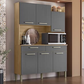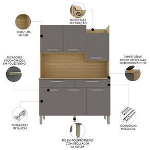 Armário de Cozinha Compacta 132cm Stella Plus Freijó/Gris Z06 - Mpozenato