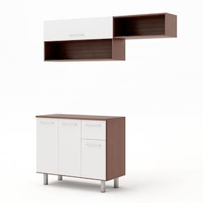 PRINCIPAIS BENEFÍCIOS: Ideal para cozinhas compactas: Aproveitamento inteligente do espaço sem abrir mão da elegância. Amplo espaço de armazenamento: Acomoda utensílios, louças e alimentos com praticidade. Design moderno e versátil: Combina com qualquer estilo de decoração. Estrutura resistente: Fabricada em MDP 12mm de alta qualidade, garantindo durabilidade. Fácil limpeza e manutenção: Superfície lisa que facilita o dia a dia. Acabamento sofisticado: Mistura equilibrada de Marrom com Branco. Ferragens metálicas reforçadas: Maior estabilidade e segurança no uso. Montagem simples e segura: Peças bem identificadas e fixação confiável.