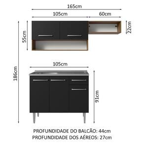 - 44 cm de profundidade no balcão e 27 cm de profundidade nos aéreos