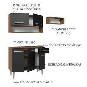 Ela é produzida com materiais de alta qualidade, garantindo durabilidade e resistência. Possui dobradiças e corrediças metálicas, puxadores com alumínio e pés em PVC com regulagem para pequenos desníveis no piso.