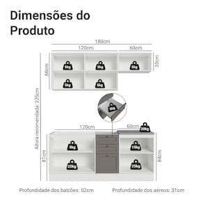 Profundidade: 52 cm (módulos inferiores) 31 cm (aéreos)