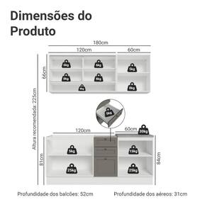 - 52 cm de profundidade nos balcões e 31cm nos aéreos