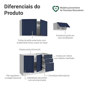 1 Balcão de Pia com 2 portas e 3 gavetas (não acompanha tampo)
