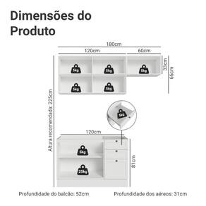 Profundidade: 52 cm (módulos inferiores) 31 cm (aéreos)
